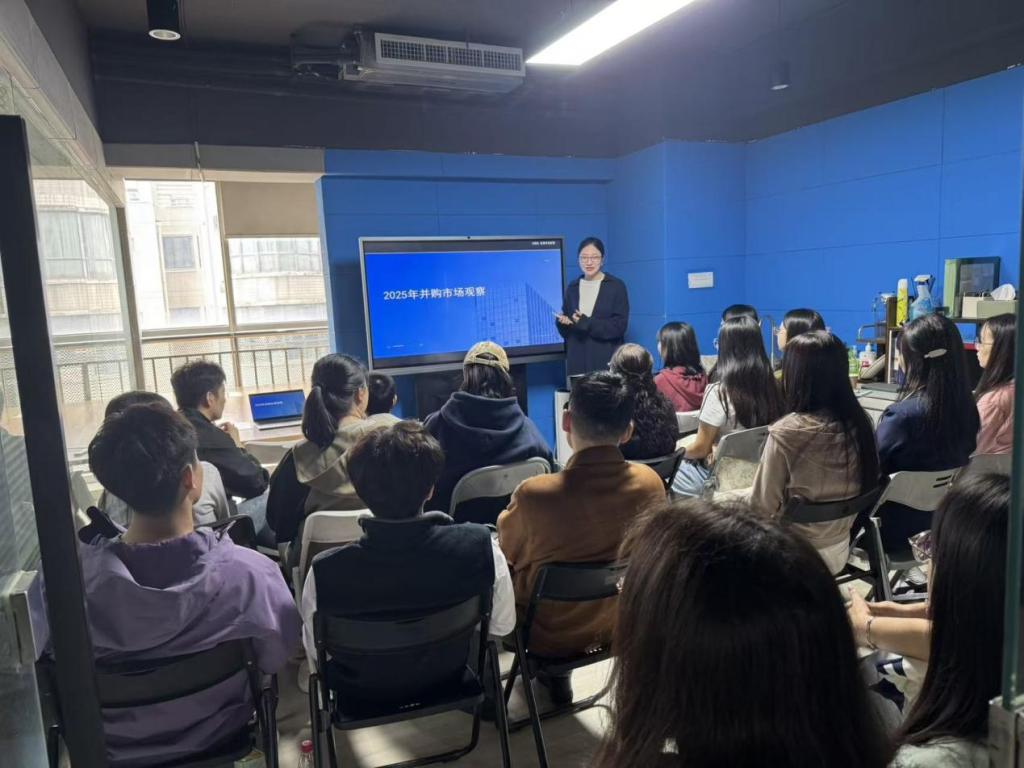 调研中,唐唐企业管理咨询有限公司总经理黄高航对学院研究生的到来表示热烈欢迎,并邀请财经自媒体“金融棒棒糖”的作者韩双羽通过专题分享、案例拆解、互动研讨等形式,有针对性的向同学们介绍了陕西地区并购重组市场的热点趋势和新型并购工具,展示了新媒体平台如何助力金融知识普及与行业资源整合,让学生直观了解到陕西金融领域的新动向。