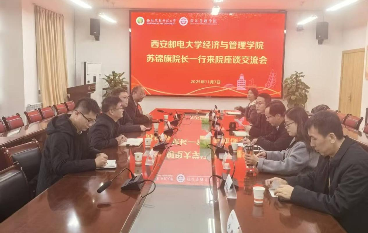 11月7日下午,我院院长苏锦旗、副院长侯光文、院长助理刘启雷、MBA教育中心许港等一行前往西北农林科技大学经济管理学院进行调研交流。西北农林科技大学经济管理学院院长石宝峰、副院长汪红梅以及MBA中心相关工作人员出席交流会。本次交流聚焦2026版本科专业人才培养方案修订、MBA项目建设与合作等核心议题,旨在通过经验互鉴与机制创新,共同推动两院高质量发展。会议由西北农林科技大学经济管理学院副院长王军智主持。