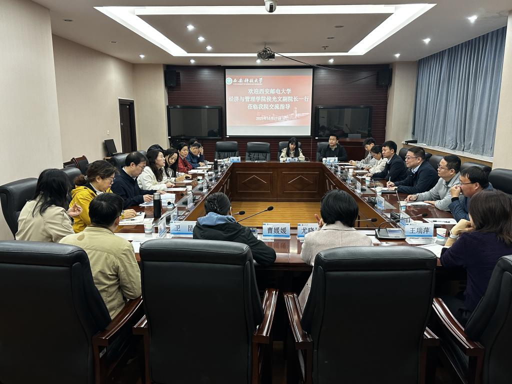 会议伊始,史玉芳对西安科技大学的发展历程与办学特色进行了介绍,重点阐述了管理学院在本科专业建设、微专业设置以及“人工智能+管理”融合发展方面的创新举措。侯光文介绍了西安邮电大学的发展历程及经济与管理学院的专业布局,重点分析了在2026版本科专业人才培养方案修订过程中专业建设存在的难点与改进方向。他表示,学院正积极推进专业群建设与产教深度融合,探索创新型人才培养模式。双方围绕专业优化、课程改革、协同育人机制等议题展开深入探讨,并就未来在联合科研、人才培养、实践教学等领域的合作方向达成初步共识。